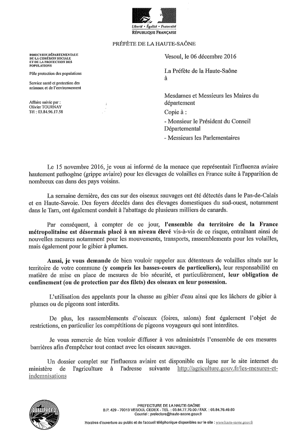 Plus d’informations dans le courrier ci-joint ou sur le site de la préfecture