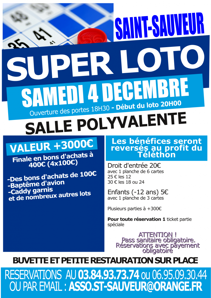 Le loto aura lieu à la salle polyvalente de Saint-Sauveur le Samedi 04 décembre 2021 :