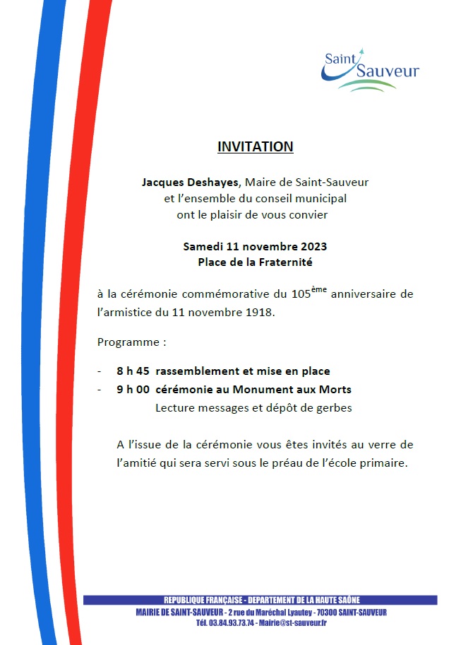 La cérémonie commémorative de l’anniversaire de l’armistice se déroulera le samedi 11 novembre, à partir de 8H45, place de la fraternité.