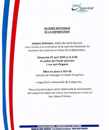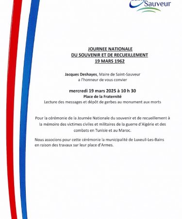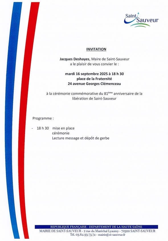 Cérémonie commémorative du 81ème anniversaire de la libération de Saint-Sauveur le 16 septembre à 18H30, place de la fraternité.