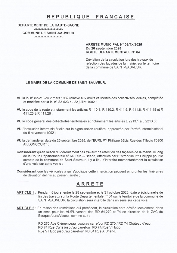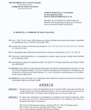 Une coupure générale du réseau d’eau sur Saint-Sauveur est programmée le 17 septembre entre 9h et 12h et 14h et 17h (horaires estimatifs en fonction des travaux). Des perturbations sont à prévoir localement le lendemain à la remise en eau du réseau. Merci de votre compréhension et désolé des désagréments à venir.