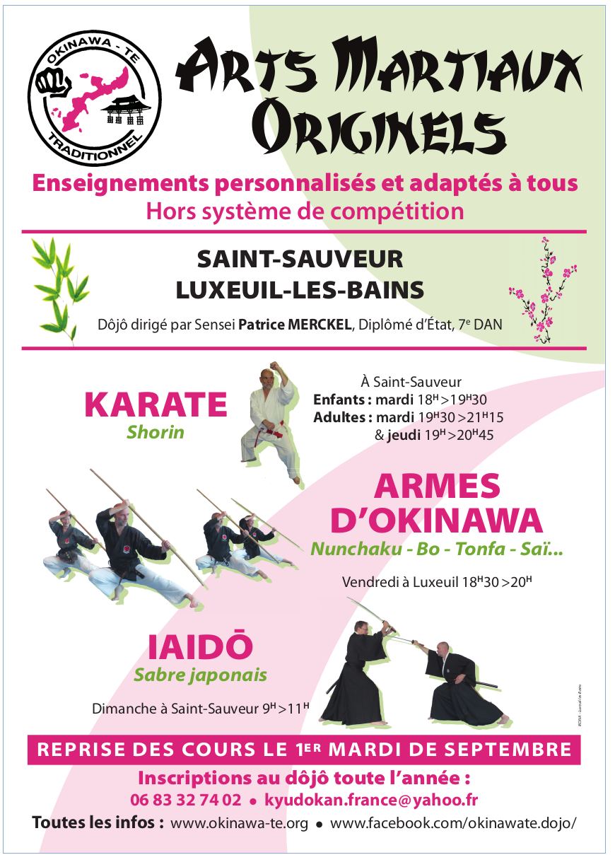 Okinawa te traditionnel dôjô va va reprendre le chemin de ses entraînements officiels, même si ceux ci n’ont jamais cessés durant les congés.Seule association régionale à proposer trois activités martiales : karatedô shorin kyudokan, kobudô d’okinawa et iaidô, elle est dotées d’un noyau d’encadrement important :– Deux diplômes d’état, trois DAF, trois DIF, un diplôme …