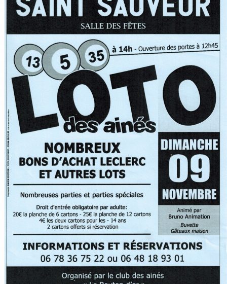 Loto du club du bouton d’or dimanche 9 novembre. Inscriptions au 06 78 36 75 22 ou 06 48 18 93 01