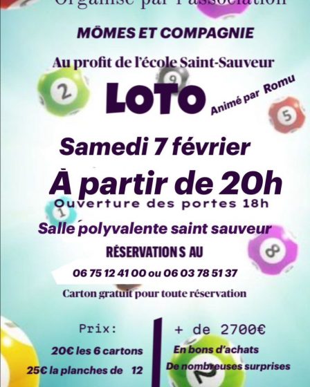 Loto de l’association Mômes et Compagnie au profit de l’école de Saint-Sauveur. C’est le 7 février à la salle polyvalente.