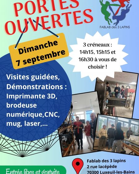 Portes ouvertes au Fablab des 3 lapins pour la rentrée le 7 septembre.