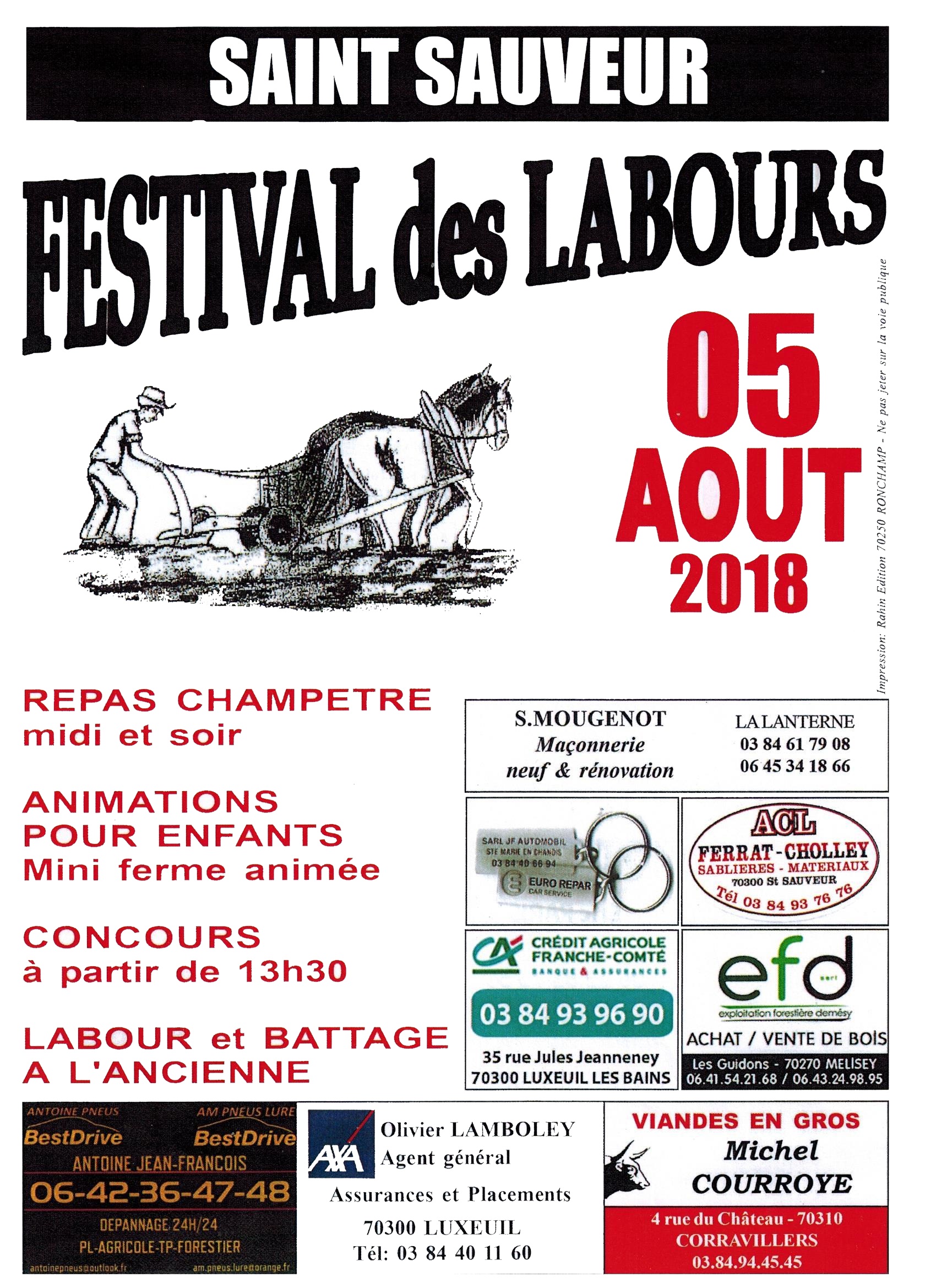 Si enfin vous souhaitez simplement profiter d’un spectacle à proximité, accompagné d’un repas alors n’hésitez pas à venir au Festival des Labours organisé par les jeunes agriculteurs du canton !