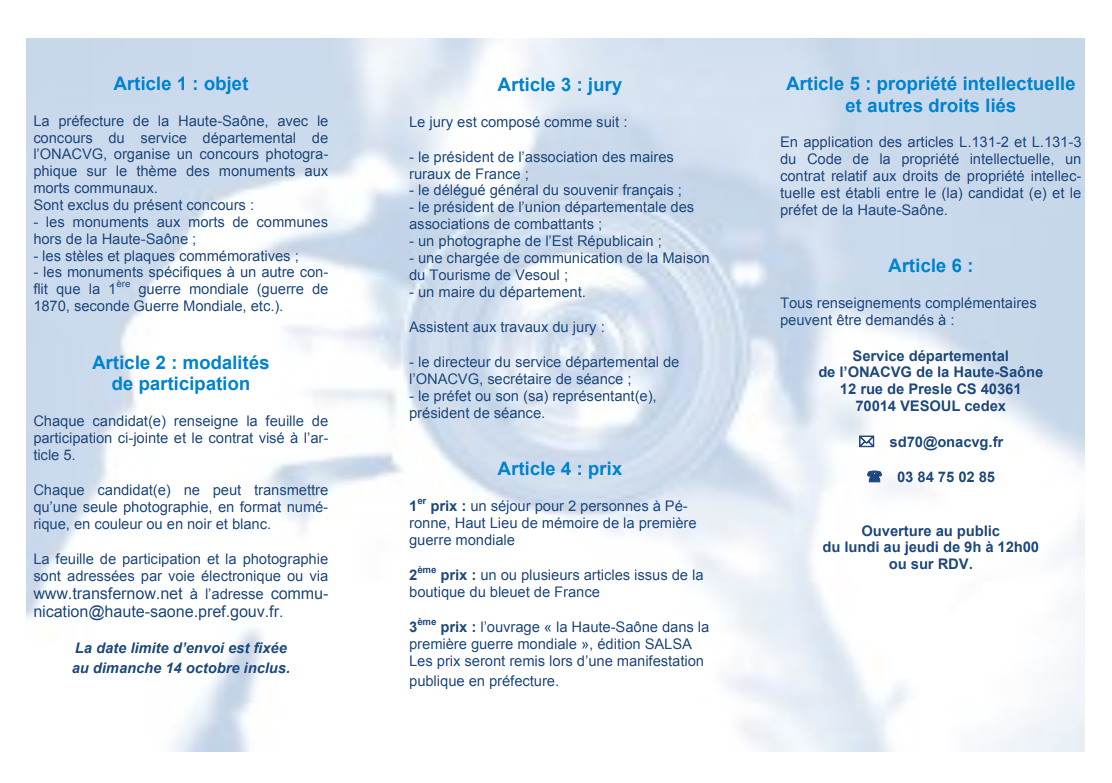 Ce concours a pour thème : « Les monuments aux morts de la Haute-Saône »