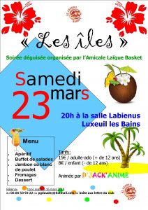 par Vincent Ruff5 mars 20195 mars 2019 L’amicale Laïque organise une soirée déguisée le 23 mars à 20h à la salle labénius. Informations et réservations au 06.66.53.93.22