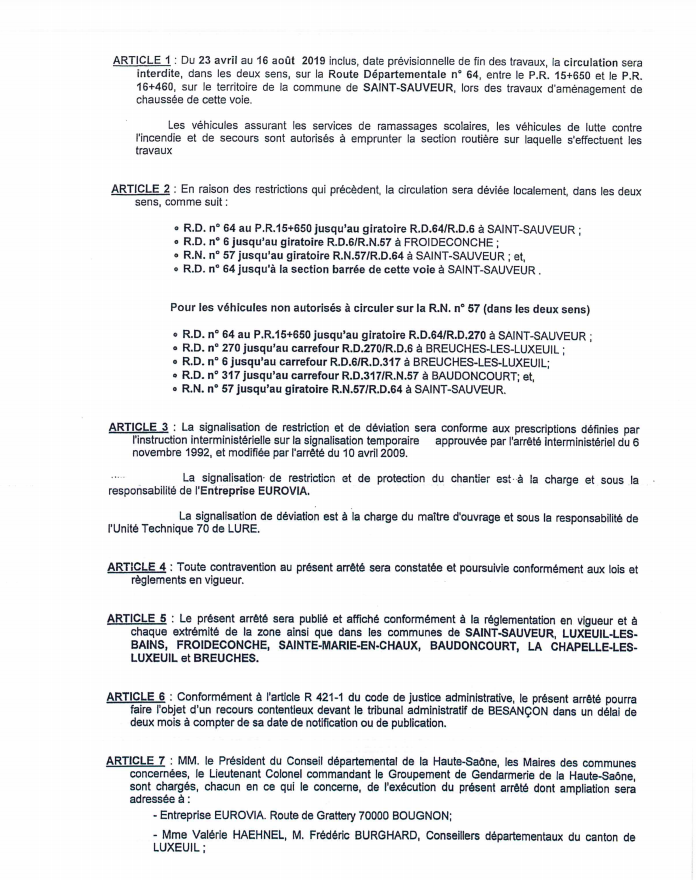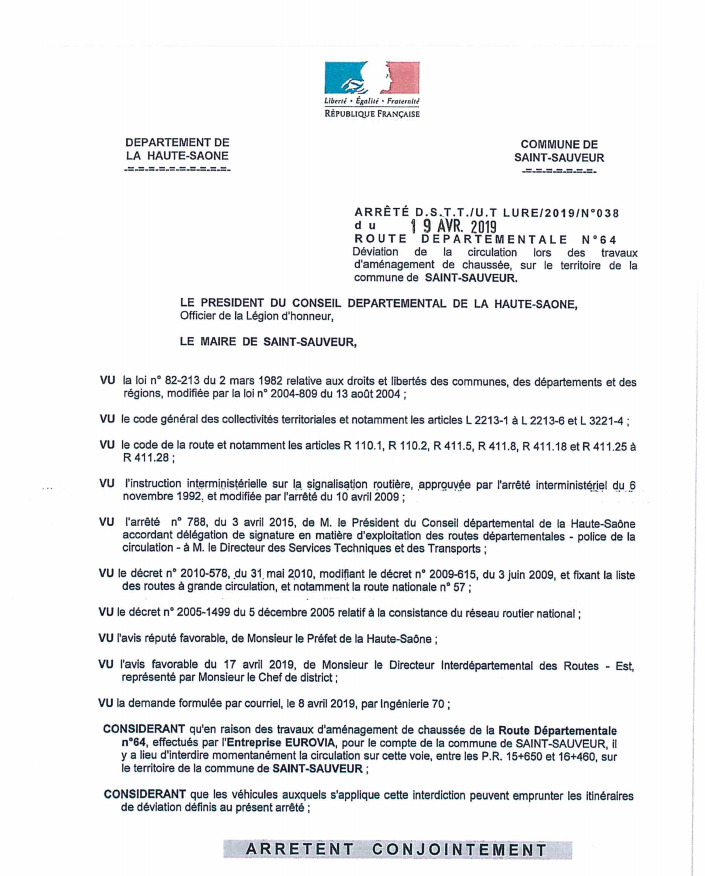 Du 23 avril au mois de juin des travaux vont avoir lieu sur la RD64 à Saint-Sauveur de la ZAC du Bouquet au rond point donnant sur l’ancienne nationale(il est possible que les travaux se poursuivent début juillet).