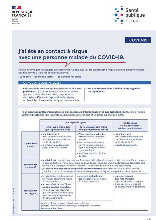 Si l’on a été en contact avec une personne testée positive au Covid-19, il est recommandé, pour se protéger et protéger les autres, de suivre les consignes suivantes :