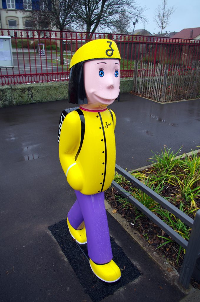 Ces deux personnages en résine symbolisant les écoliers sont placés là pour rappeler aux automobilistes la présence de jeunes enfants et les inviter à redoubler de prudence.Les couleurs vives accentuent le message de prévention en rappelant que le fait d’être bien vu est primordial pour permettre aux conducteurs d’anticiper la présence de piétons.