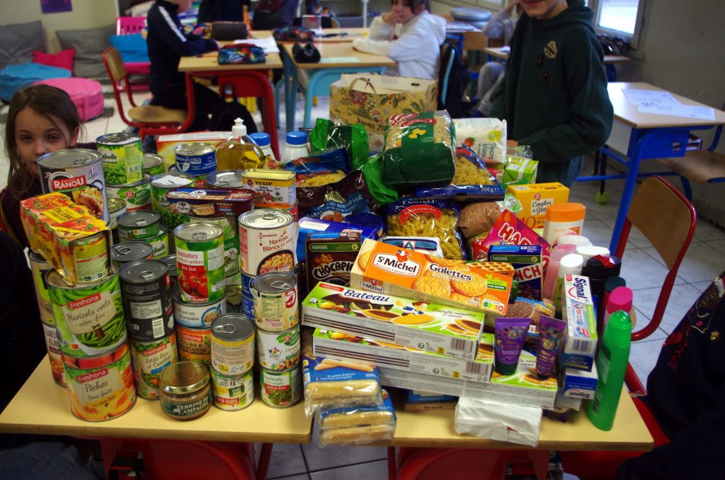 Les enfants ont choisis d’organiser une collecte alimentaire, mais aussi de produits d’hygiène, en faveur des restaurants du cœur !
