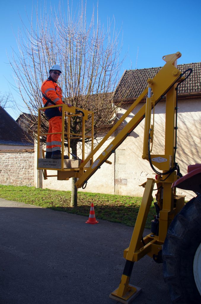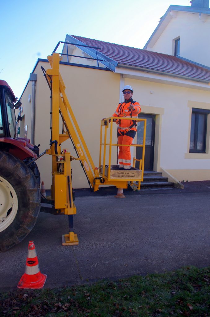 Aujourd’hui la commune dispose de son propre élévateur à nacelle (élévateur de marque Orenge de 7m, montés sur tracteur), ce qui va permettre un travail en hauteur en toute sécurité, des économies substantielles sur le long terme mais surtout permettre une grande réactivité sur des travaux qu’il fallait prévoir en fonction des disponibilités des nacelles en prêt.