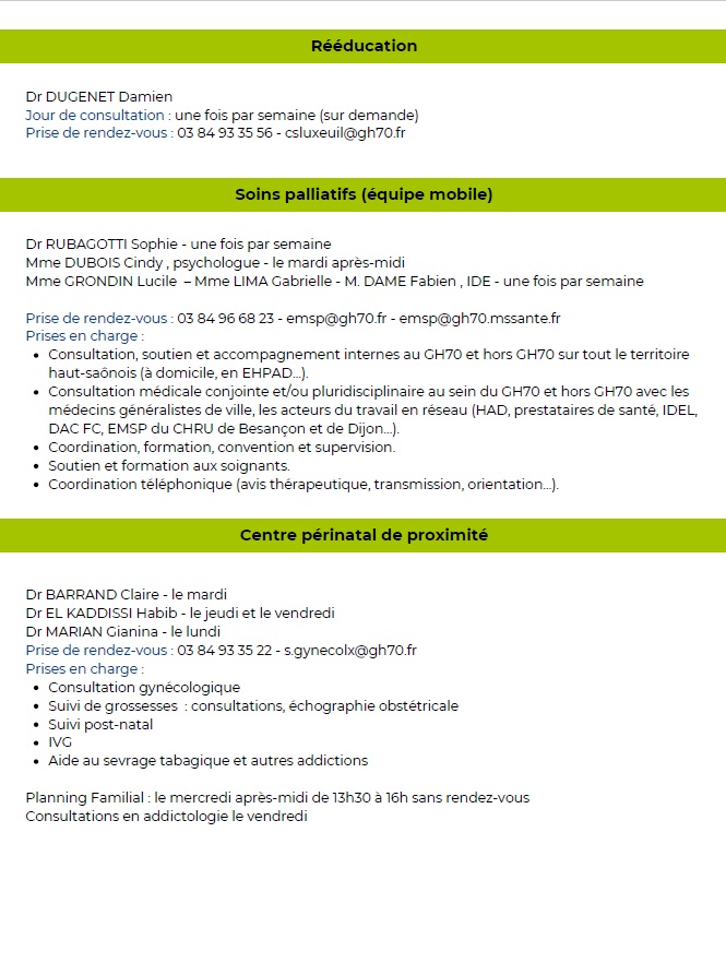 Veuillez trouver la liste des offres de soins de proximité des différents secteurs.