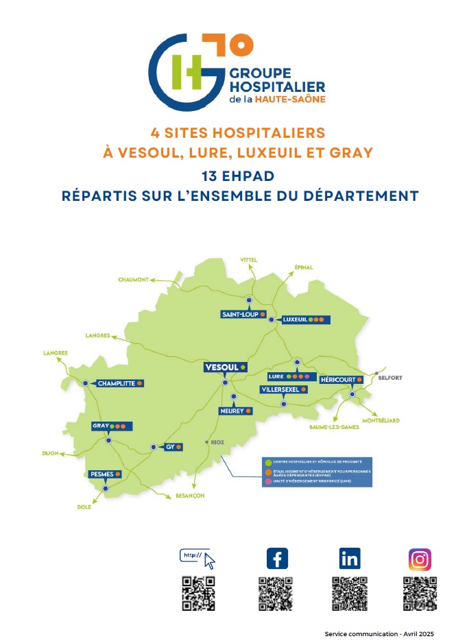Le GH70, établissement départemental composé de 4 hôpitaux et 13 EHPAD, se mobilise pour proposer à la population du territoire haut-saônois une offre de soins de qualité et de proximité sur l’ensemble du département.