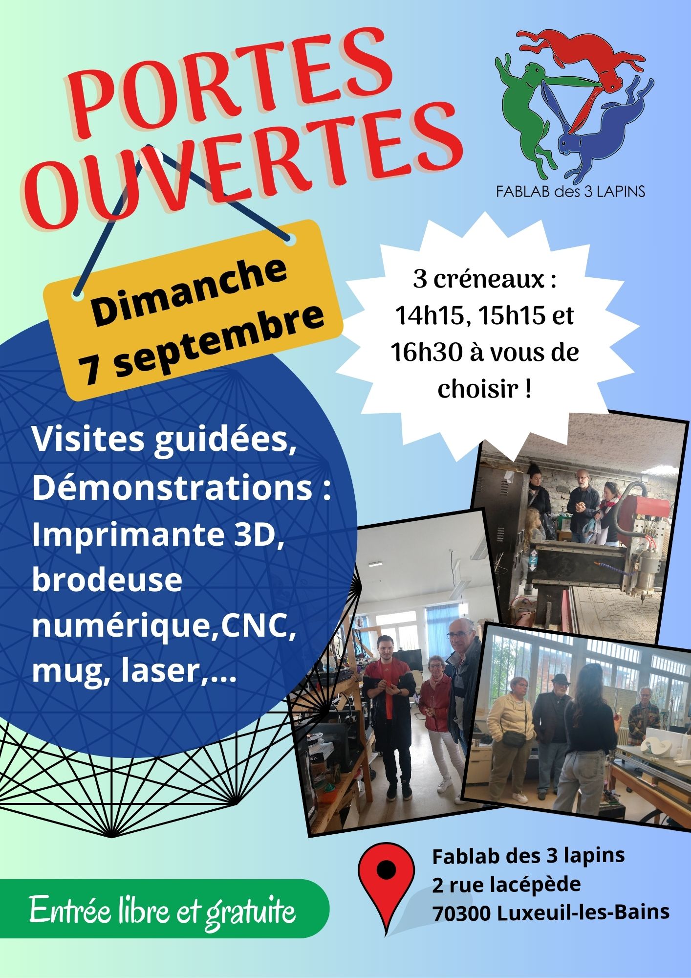 Portes ouvertes au Fablab des 3 lapins pour la rentrée le 7 septembre.