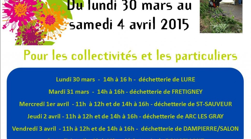 Il y aura une démonstration de broyage de déchets verts le Mercredi 1er avril de 11 H à 12 h et de 14 H à 16 à la déchetterie de Saint-Sauveur.