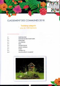 Le concours départemental des maisons, villes et villages fleuris récompense le travail de tous les jardiniers, particuliers et comités de fleurissement, qui chaque année embellissent la Haute-Saône. En 2018, le jury du concours a visité 127 communes dont 26 de plus de 1000 habitants. A l’issu de ces visites un classement est établi récompensant les …